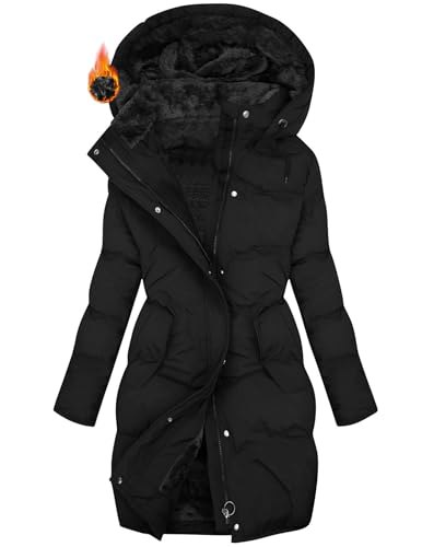 Pirαtе-Dеαl!s CSYX Wintermantel Damen Lang Warm Gefüttert Fleecejacke Winterjacke Elegant Steppmantel Jacke Winddicht Mantel Steppjacke Kapuzenjacke Fleece Parka Casual Winterparka Mäntel Daunenjacke Daunenmantel