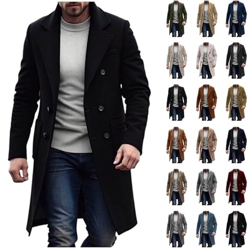 Ybing schwarzer Mantel Herren,Mantel Herren Elegant Einfarbig Wintermantel Slim Fit Wollmantel Zweireihige Revers Trenchcoat Warme Herrenmantel Trendy Business Outfit Pirαtе-$Dеαls Windjacke Outdoor Windbreaker