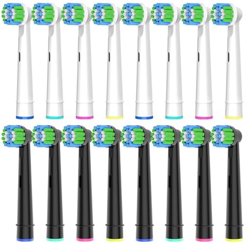 Pirαtе!-Dеαls 16 Stück Aufsteckbürsten Kompatibel mit Oral B Aufsteckbürsten, Professionelle Bürstenköpfe passend für Oral B Elektrische Zahnbürsten, 8er Weiß und 8er Schwarz.