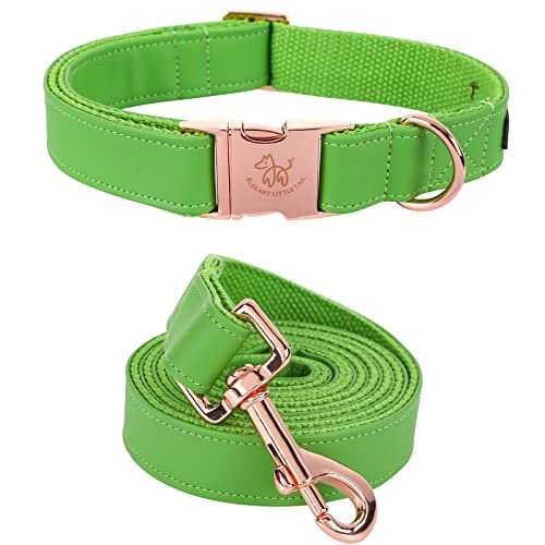 Elegant little tail Hundehalsband und Leine aus Leder, Grün, strapazierfähiges Hundehalsband, Mädchen- oder Jungenhalsband, verstellbare Hundehalsbänder für Pirαtе-#Dеαls kleine Hunde, Hals 25,4-40,6 cm