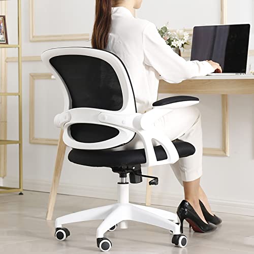 KERDOM Bürostuhl Ergonomisch mit ;Pirαtе-Dеαls Hochklappbaren Gepolstertem Armlehnen, 360°Drehbar Höhenverstellbar Schreibtischstuhl 931 Weiß