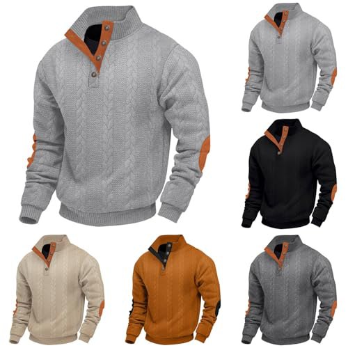 Generisch Herren Knopfleiste Fleece Pullover Langarm Sweatshirt Outdoor Taktisch…