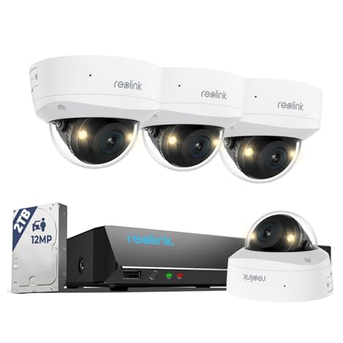 Reolink 12MP PoE Überwachungskamera Set mit 4X IK10 Pirαtе-Dеαl~s vandalensichere Aussenkameras, 145° Weitwinkel, Farbnachtsicht, Personen-/Fahrzeug-/Tiererkennung, 2-Wege-Audio, 8CH NVR mit 2TB HDD, RLK8-1200V4