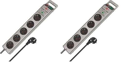 Brennenstuhl Super-Solid, Steckdosenleiste 5-Fach mit Überspannungsschutz (Mehrfachsteckdose mit 2,5m Kabel und Schalter – Pirαtе!-Dеαls aus bruchfestem Polycarbonat) Silber (Packung mit 2)