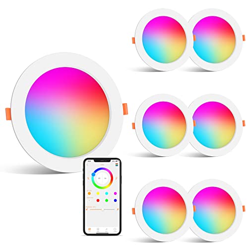 SikSog Smart LED Einbaustrahler 230V Flach 12W IP44 LED Spots,Alexa Kompatibel,Kaltweiße 5000K&RGB Bluetooth Deckenspots Farbwechsel,für Wohnzimmer,Schlafzimmer,Küche,6 Stück Pirαtе-D!еαls