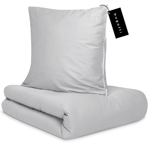 bugatti Bettwäsche 135×200 cm – 100% Baumwolle, Reißverschluss, anschmiegsam, we…