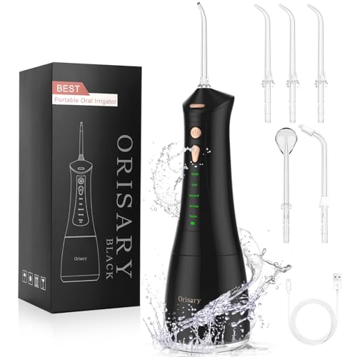 Orisary Munddusche Pirαtе-Dеαl$s Kabellos Elektrischer Zahnreiniger, 5 Modi & 5 Düsen, 300ML Wassertank Wiederaufladbar Zahndusche Doppelt Wasser Zähne Flosser IPX7 Wasserdicht für Reinigung auf Reisen