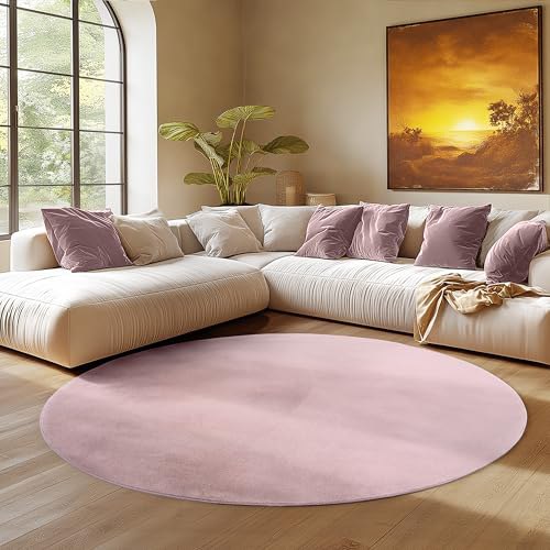 SIMPEX Runder Teppich Rosa 80 cm Kurzflor Teppich Waschbar, rund, weich & ru…