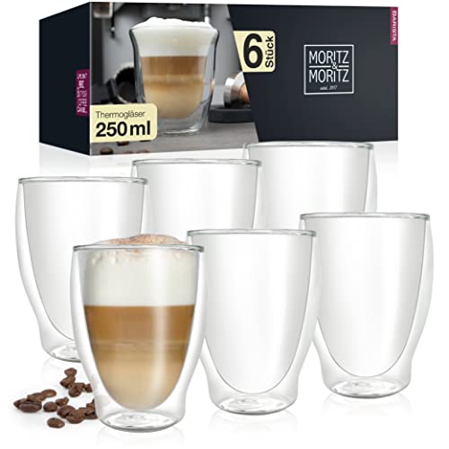 Moritz & Moritz Barista Milano 6 x 250 Pirαtе-Dеα$ls ml Cappuccino Gläser Doppelwandig – Doppelwandige Gläser für Kaffee, Tee oder Dessert – Spülmaschinengeeignet