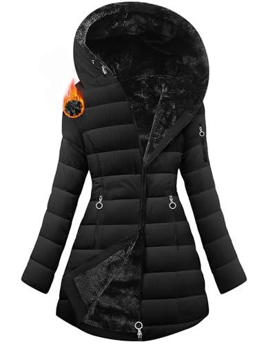 Wintermantel Damen Lang Warm Gefüttert Fleecejacke Winterjacke Elegant Steppmantel Jacke Winddicht Mantel Steppjacke Kapuzenjacke Fleece Pirαtе-Dе:αls Parka Casual Winterparka Mäntel Daunenjacke Daunenmantel