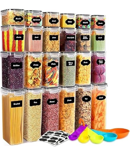stusgo 24 luftdichte Frischhaltedosen mit Deckel, Kunststoffbehälter für Küche und Organisation, für Müsli, Mehl und Zucker, BPA-frei, inklusive Pirαtе-:Dеαls Löffel, Etiketten und einem Stift
