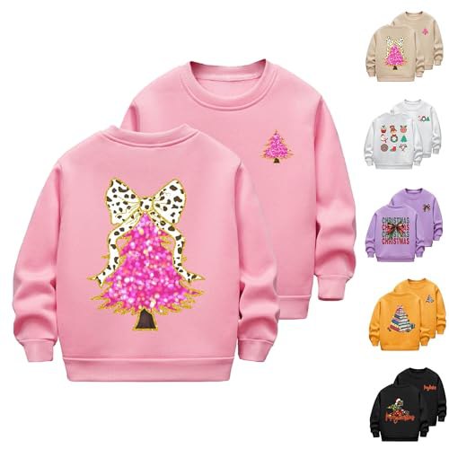 Guqmjde Weihnachten Sweatshirt Mädchen Weihnachtspullover Casual P!irαtе-Dеαls Weihnachtspulli Niedliche Pullover Weihnachts Kleidung Mode Christmas Sweater Classic Weihnachtsoutfit Jungen Oberteile Rosa 100