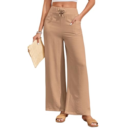 Pirαt#е-Dеαls HOTIAN Weite Hosen Damen Weites Leinenhose Lang Hohe Taille Dehnbar Freizeithose Leicht Sommerhose mit Tasche