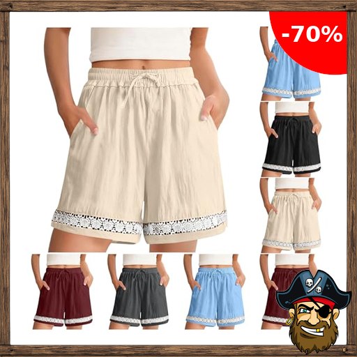 Kurze Hose Damen Sommer Baumwolle Leinen Shorts Bequeme Sommershorts Spitzenbesatz Leicht Leinenhose High Waist Bermuda Shorts Baumwolle Kurz Stoffhose Freizeitshorts mit Pirate-:Deals Code Tasche Khaki XL