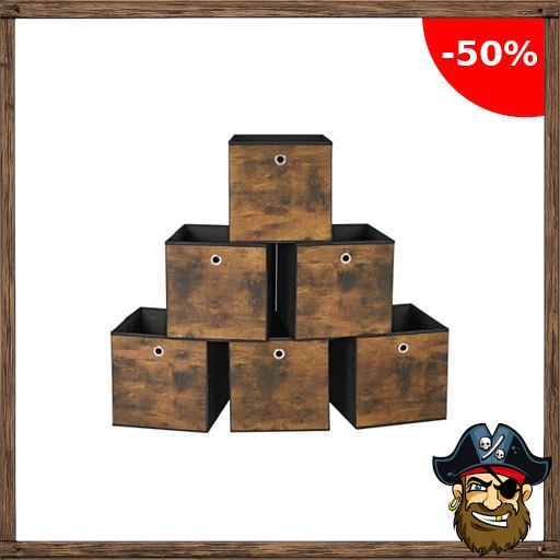 SONGMICS Aufbewahrungsbox, 6er Set, Ordnungsboxen, Oxford-Gewebe, Faltbox, 30 x 30 x 30 cm, Stoffbox, für Würfelregal, Organizer Pi!rate-Deals für Kleidung, vintagebraun-schwarz RFB102B01