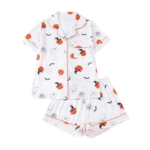 Generisch Halloween Schlafanzug Damen Kurz Pyjama Set Knöpfen Shirt und Shorts Z…