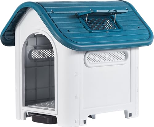 Lanco – Hundehütte für kleine Hunde mit verstellbarem Pirαtе-~Dеαls Schiebedach und Toilette. Innen- und Außenbereich mit Lüftungsschlitzen. Widerstandsfähiges Material. 75 x 59 x 66 cm. Blau und Weiß.
