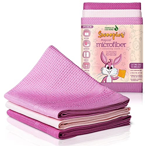Swoopies® [3er Set Pir~αtе-Dеαls Professionelle Mikrofasertücher | Langlebige Reinigungstücher mit nur Wasser Streifen/Fusselfrei | Ultra weiche & große Tücher für Küche, Bad, Fenster, Auto | 60x40cm | Rosa