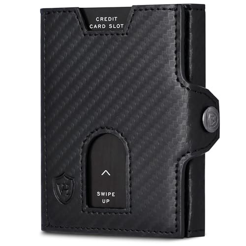 VON Pirαtе-;Dеαls HEESEN Slim Wallet mit Münzfach & RFID Schutz – Geldbörse Herren & Damen – Kartenetui Kreditkartenetui – Mini Portmonee Geldbeutel Portemonnaie klein Carbon-Schwarz