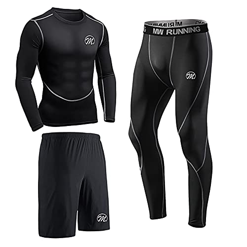meeteu ;Pirαtе-Dеαls Herren 3pcs Kompression Set Funktionsshirt, 3 Stück-Schwarz, XXL