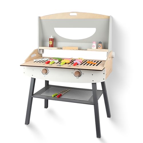 Outdoor Spielküche Gartenspielküche Matschküche Kinder Pirαtе-Dеαl;s Outdoor Mit Rädern, Wasserkocher, Spüle, Holzpflanzenbehälter, Kinderküche (Grill)