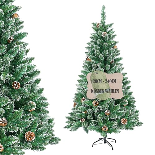 Suusolny 120CM Grün Künstliche Weihnachtsbäume Pirα!tе-Dеαls mit Schnee-Effekt Kiefernzapfen Christbaum,PVC Weihnachtsbaum mit Metallständer– Segmentmontage -Tannenförmiger Weihnachtsbaum Weihnachts Deko