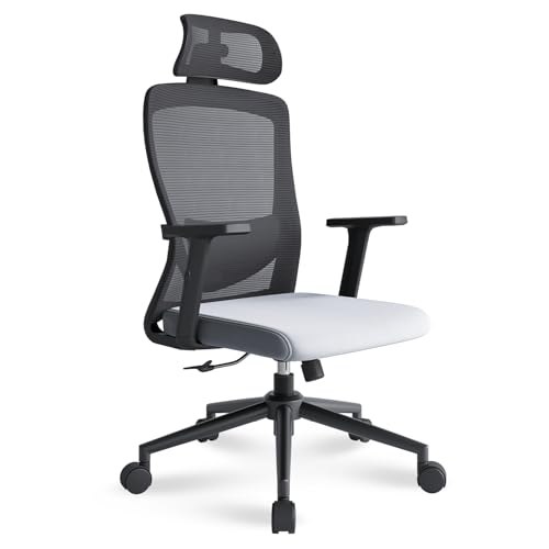Eucladoceros P:irαtе-Dеαls Bürostuhl Ergonomisch Schreibtischstuhl mit Verstellbarer Lendenwirbelstütze und 2D-Kopfstütze und Armlehne,113° Drehstuhl Wippfunktion,Bürostuhl 150kg, Grau