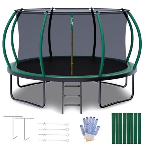 SAIBERTAN Trampolin Outdoor Ø 244/305/366cm | Pir#αtе-Dеαls EN-71-Zertifizierung | Rundes Gartentrampolin für Kinder mit Sicherheitsnetz, Leiter & Fäustling, Kürbis-Design