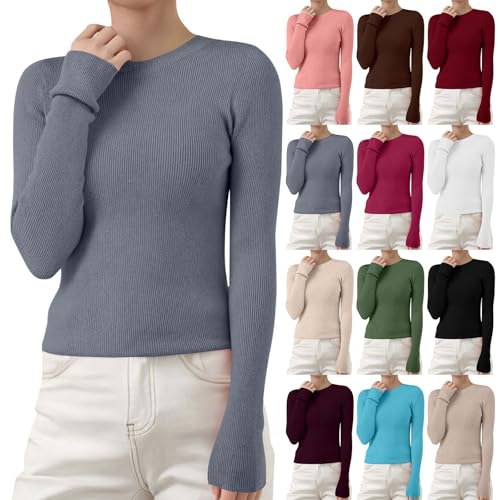 Damen Strickpullover Autumn Winter Leichter Pullover Elegant Einfarbig Tunika Strickpulli Feinstrick Winterpullover Warm Rundhal/V-Ausschnitt WinterPulli Gestrickter Pir;αtе-Dеαls Sweater (A-1-Grey, M)