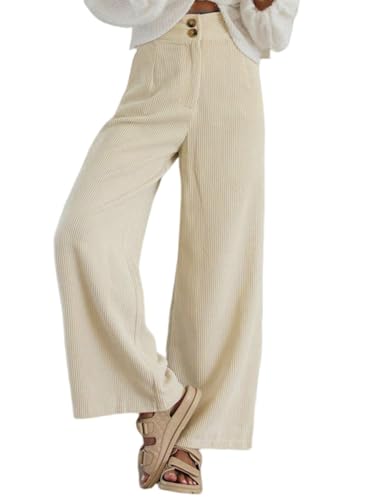 Imuedaen Pirαtе-Dе#αls Cordhose Damen High Waist Weites Bein Hosen Freizeithose Lang Casual Locker Hose mit Taschen und Knöpfen (Beige, XL)