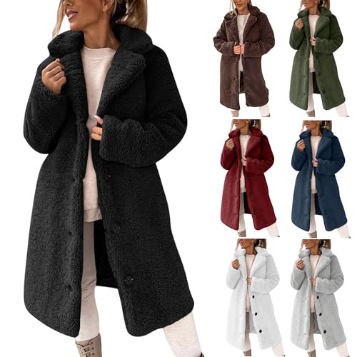 Guhmomh Teddyjacke Damen Lang Fleecejacke Teddy Trenchcoat Wintermantel Knöpfe K…