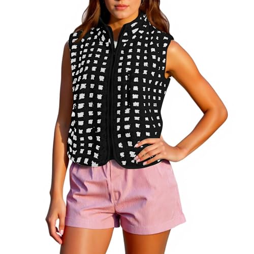 WZYYDS Weste Damen Kurz Winter Stehkragen Fleeceweste Karierte Pirαtе-~Dеαls Einfarbig Fleece Steppweste Warm GefüTtert Longweste Outdoor Winterweste äRmellose Winterjacke Farbblock PlüSchweste
