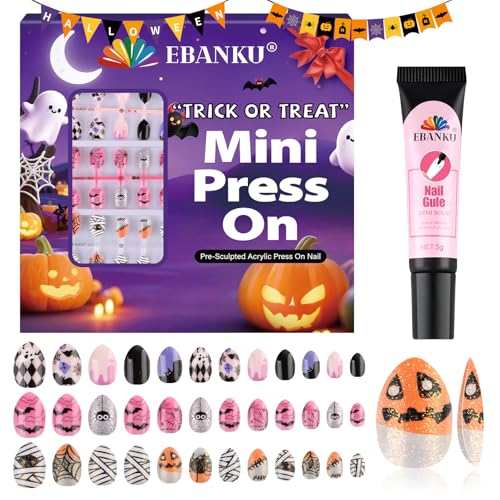 72 Stück Halloween-Kunstnägel für Kinder, EBANKU 3er-Pack Kunstnagel-Set für Kin…