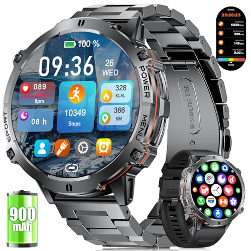 LIGE Smartwatch Herren Militär mit Große 900mAh-Akku, 1,73″ AMOLED Großbildschir…