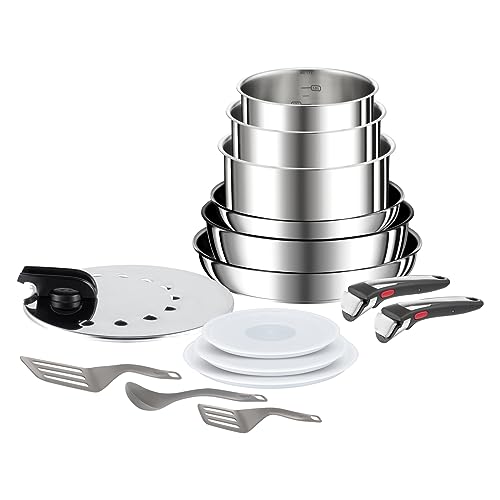 Tefal Ingenio Preference #Pirαtе-Dеαls On 15-teiliges Topf und Pfannenset abnehmbarer Griff, stapelbar, platzsparend, Topfset Induktion mit Antihaftversiegelung, einfache Handhabung und Reinigung, L97495