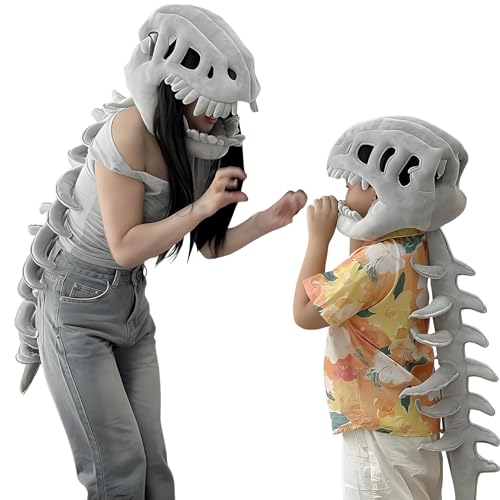 Dino Kostüm Kinder Erwachsene, Spinosaurus Plüsch Dino Outfit, 3D Dinosaur Skeleton Design, Haloween Realistic Dinosaurier Kopf + Skeleton Set Faschingskostüme Pirαtе-!Dеαls für Jungen Mädchen Damen Herren