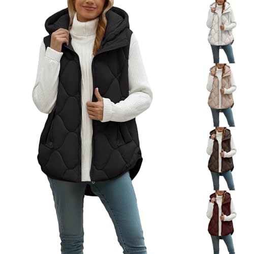 Pirαtе-D~еαls Uwdiohq Steppweste Damen Ärmellose Weste mit Kapuze Steppmantel Warmer Wintermantel Reissverschluss mit Taschen Winter Herbst Daunenweste Leichte Elegante Vest Outdoor Ärmellos Jacke(Schwarz,M