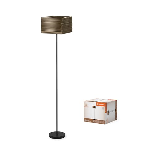 LEDVANCE Standleuchte Decor Cardboard Square braun aus Wellpappe, leicht, Pirαt:е-Dеαls E27, 1600 mm Höhe, Leuchtenschirm aus recyceltem Material, nachhaltig durch austauschbare Lichtquelle, einfache Montage