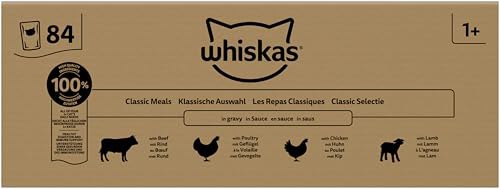WHISKAS Adult 1+ Katzenfutter nass – ab 1 Jahr – 84x85g Portionsbeutel – Klassis…