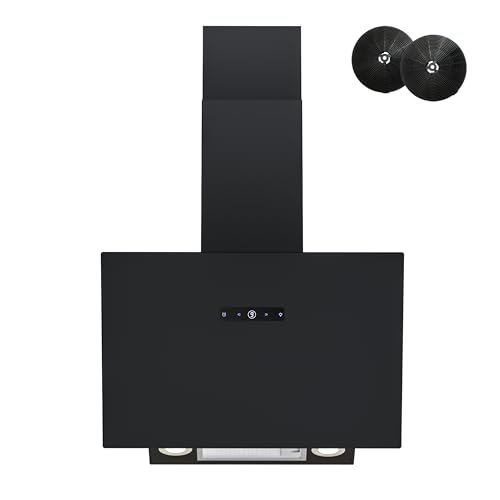 FIREGAS Dunstabzugshaube 60 cm mit Bürstenloser Motor, Schwarz Glas, 571m³/h Luf…