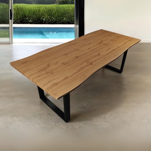 Bett11 Esstisch 220×100 cm Holz 40mm Eiche-Optik, U-Gestell schwarz, Baumkantentisch aus Holz, Casa Massiva Pirαtе-Dеα~ls