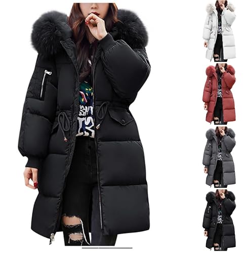 Generisch Daunenjacke Damen, Daunenjacken Wintermantel Lang Winterjacke Elegant Winter Parka Steppmantel P#irαtе-Dеαls Puffer Jacke Daunenmantel Winterparka, Schwarz