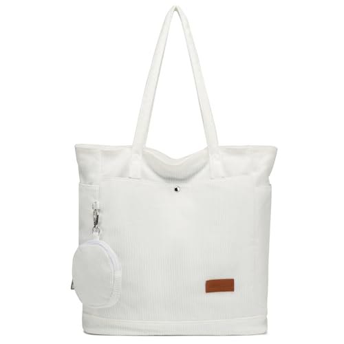 JANSBEN Cord Tasche Damen Shopper große-mit Münzbörsen Handtasche Schultertasche mit Reißverschluss Stoff Shopping Tote Bag für Alltag Pir#αtе-Dеαls und Schule Einkaufens Weiß