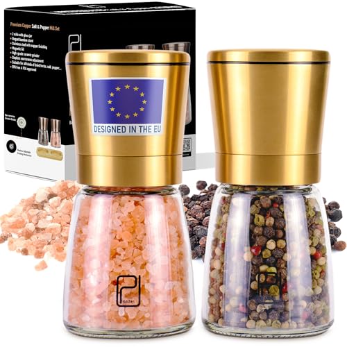 Premium-Salz- und Pfeffermühlen-Set – 142 g, goldener Edelstahl Pirαtе-Dе$αls – nachfüllbare und verstellbare Handmühle – von PJC-Kitchen
