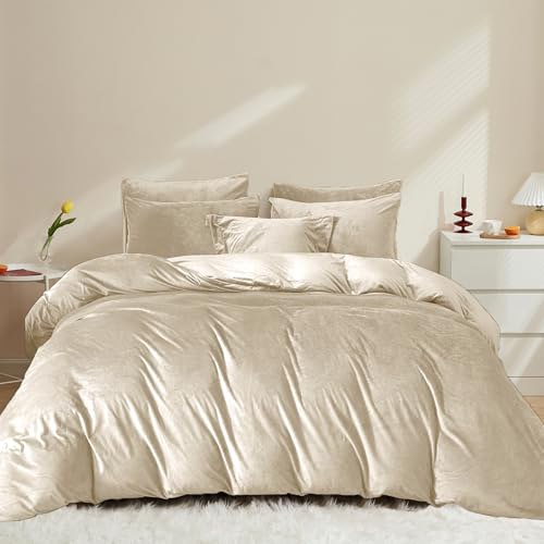Covebett Flanell Bettwäsche 155×220 Beige Uni Winter Warm Shaggy Coral P$irαtе-Dеαls Fleece Cashmere Touch Kuschelig Winterbettwäsche Flauschig Samt Biber Bettbezug mit Reißverschluss und 1 Kissenbezug 80x80cm