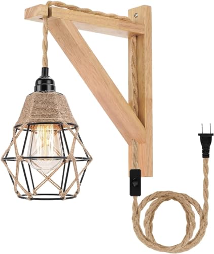 Lightess Lampe Vintage Wandleuchte Retro Wandbeleuchtung aus Metall und Holz Vin…