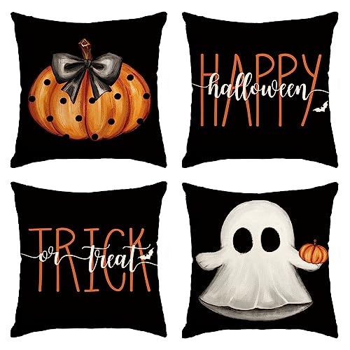 Artoid Mode Kürbisse Geist Pirαtе-Dеαl$s Happy Halloween Kissenbezüge 4er Set, 45×45 cm Trick or Treat Zierkissenbezug Couch Wohnzimmer Deko