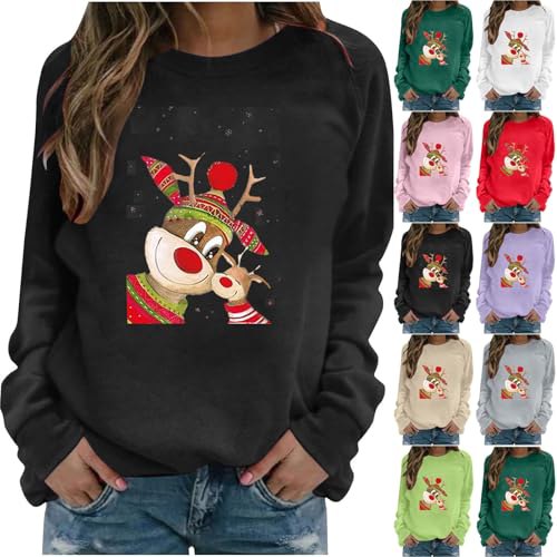 Jamicy Weihnachtspullover Damen Lustige Sweatshirt Weihnachten Pullover Rentier-…