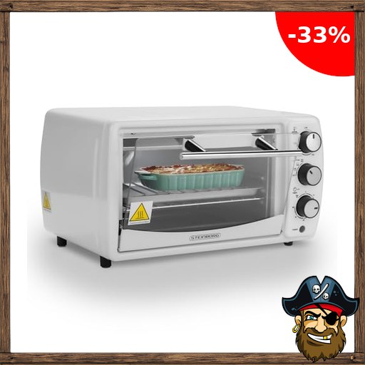 Mini Backofen Pi;rate-Deals 13 Liter 1200 Watt Pizzaofen 65°-230°C Timer aufklap…