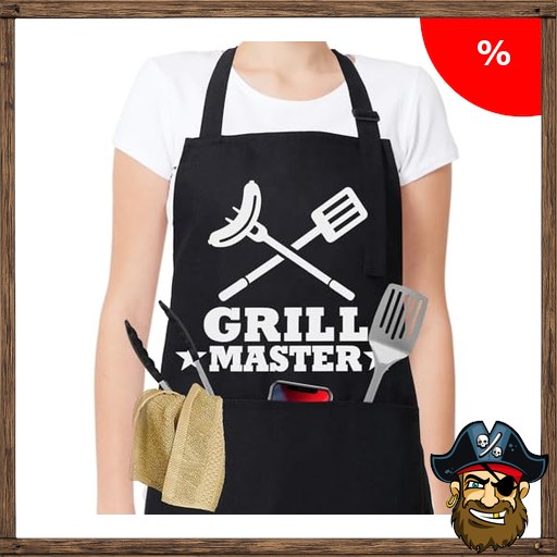Greyoe Kochschürze ~Pirate-Deals Herren, Grillschürze für Männer, lustige BBQ Schürze mit Taschen, Verstellbar, Geschenk für Papa, Ehemann, Schwarz